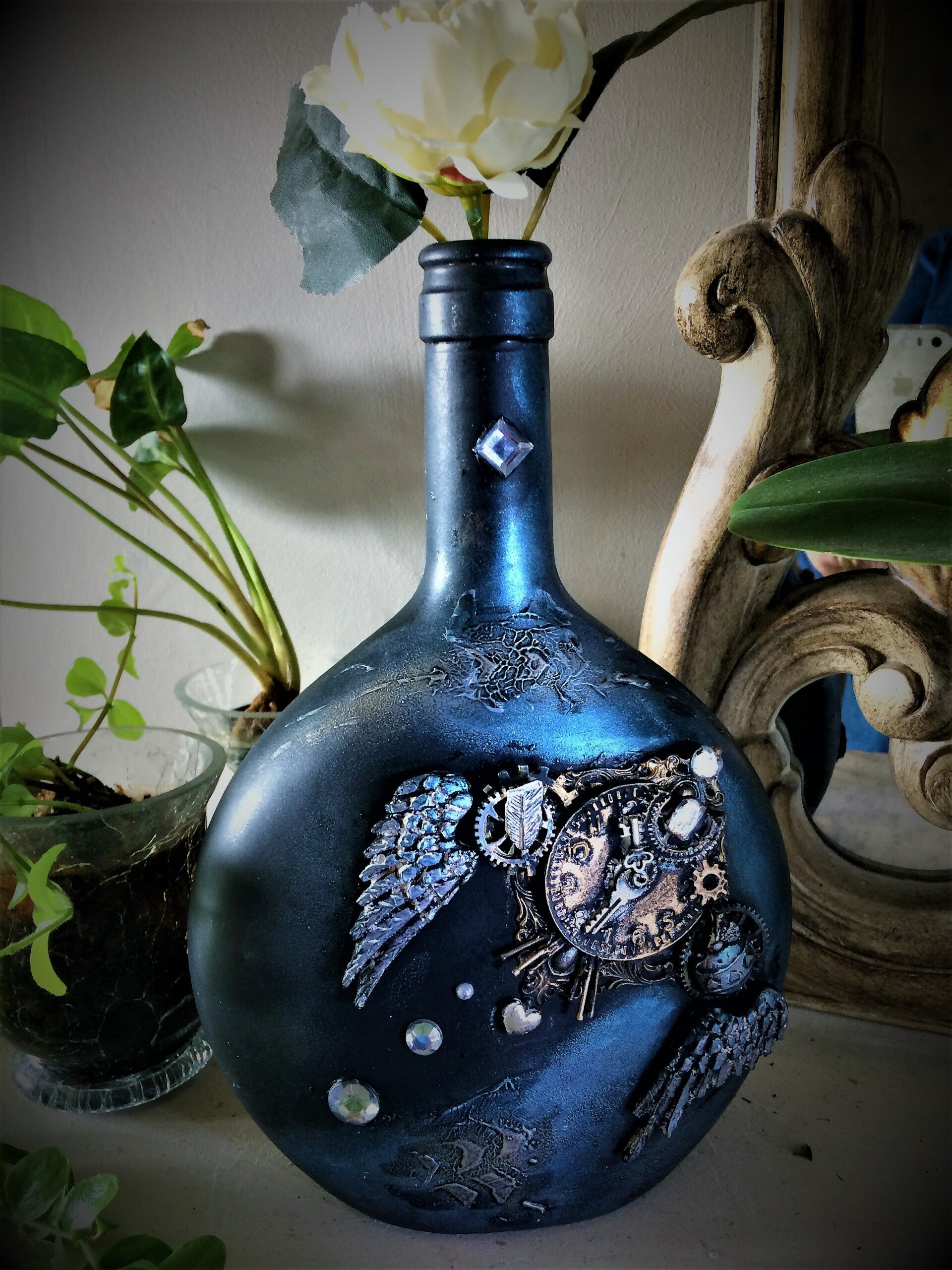 El montaje de las piezas y la coordinación de los colores en nuestras fioles y vidrios cuentan historias únicas. Cada frasco es una narrativa visual, diseñada para capturar la imaginación y añadir un toque de misterio a tu espacio.