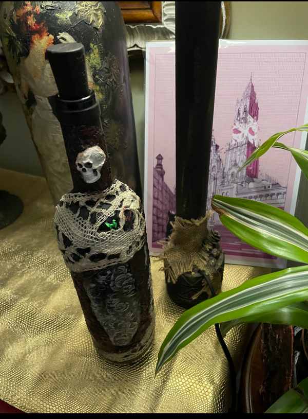 "La Guardiana del Umbral" – Lámpara de Botella de Técnica Mixta